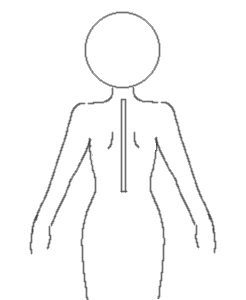 両肩先の(腕の付け根にある肩骨)の間のサイズで、 首を前倒しすると突起する頚椎の7番目の骨を、 通るように測るよう注意して下さい。 5.背幅
